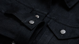 Black denim, a bit sleeker than indigo and a bit edgier too. The only difference between this denim and the indigo denim found on the Prologue is the dye. Slub and nep gently roll through this 15oz fabric. Just enough for the person next to you to notice; this is no ordinary denim.